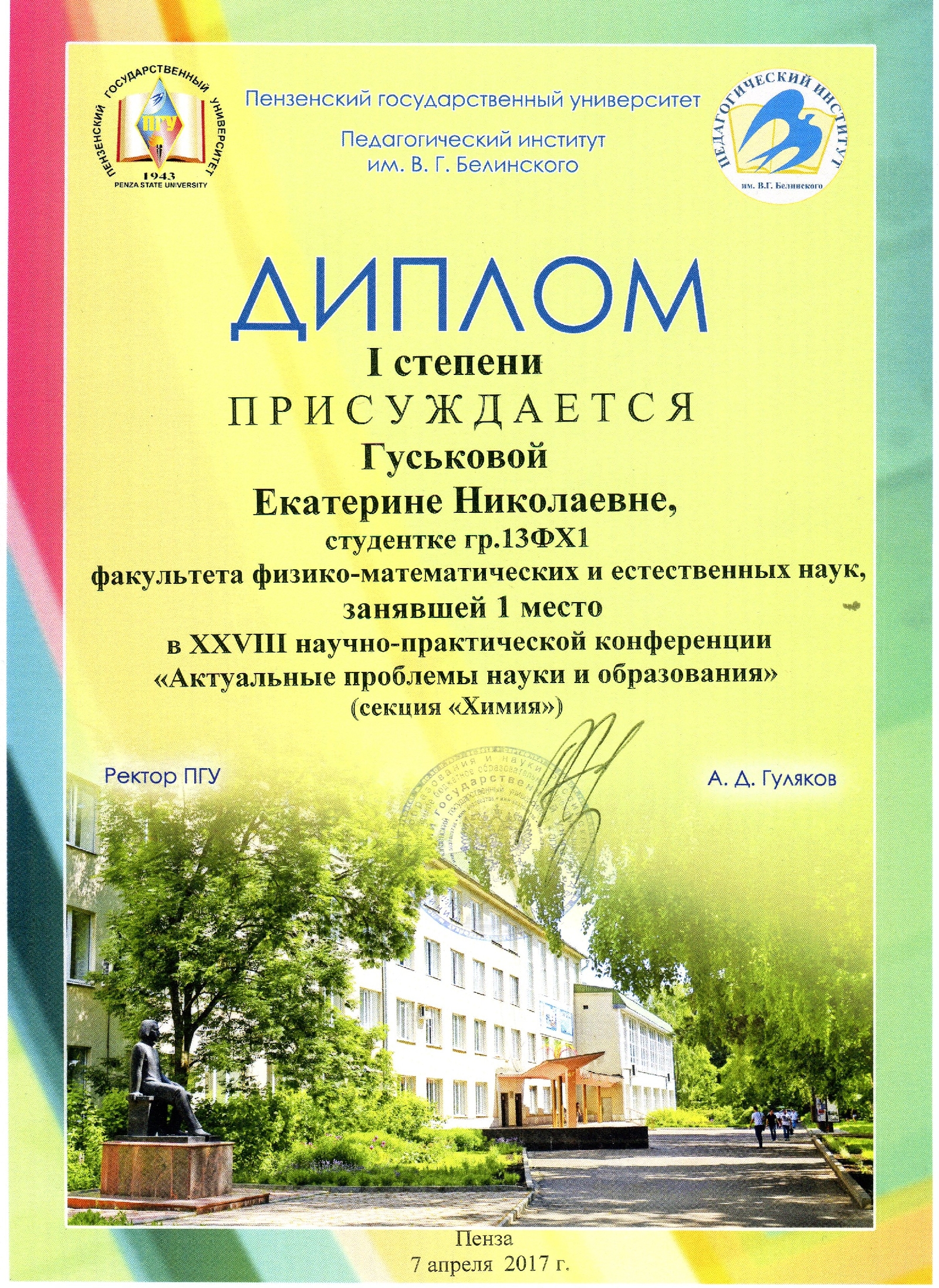 6 апреля 2017 года на кафедре "Химия и теория и методика обучения химии" прошла конференция "Актуальные проблемы науки и образования". Были заслушаны доклады в секциях "Химия" и "Методика обучения химии". Студенты представили доклады по различным темам, включаюшим спектрофотометрическое определение орагнических и неорганических веществ, сравнительные характеристики методов аналитической химии, сравнение лекарственных препаратов и изучение свойств пен.