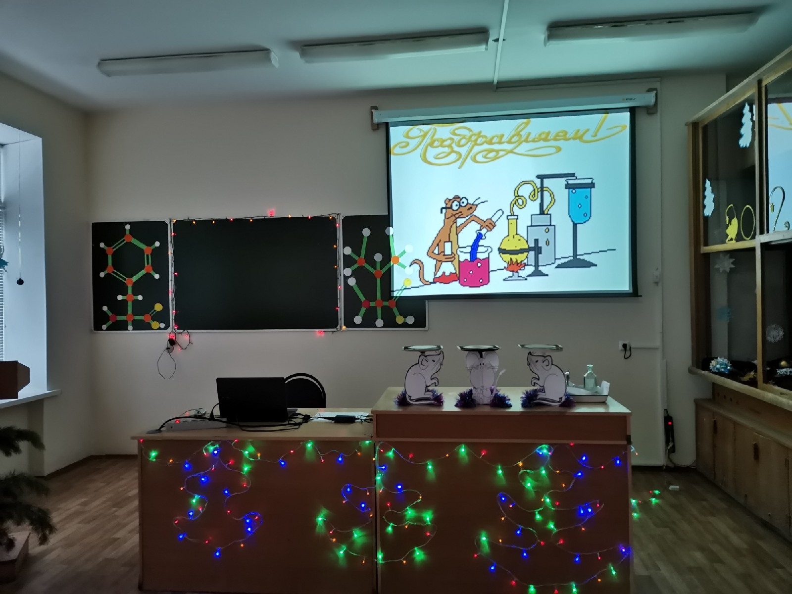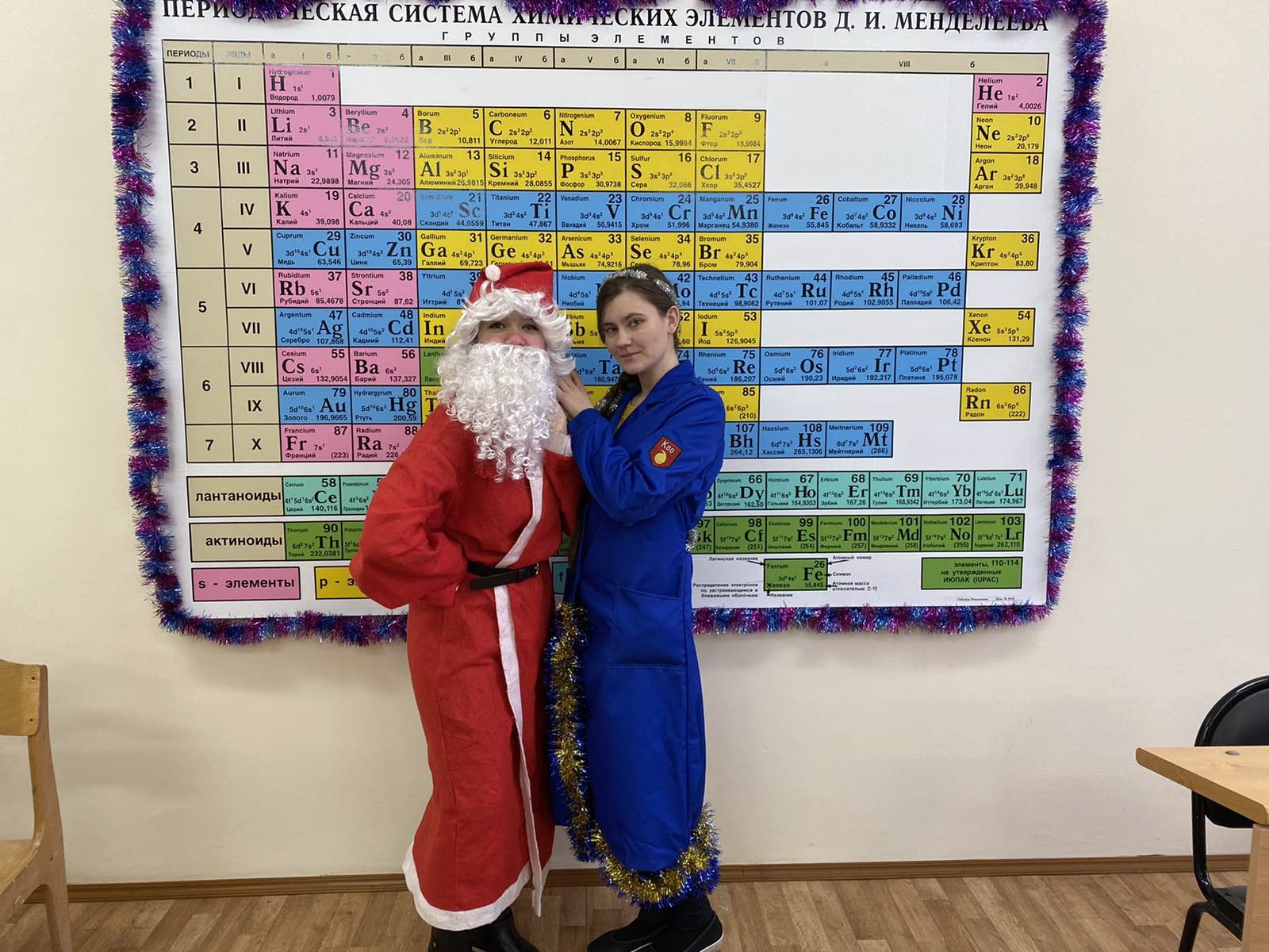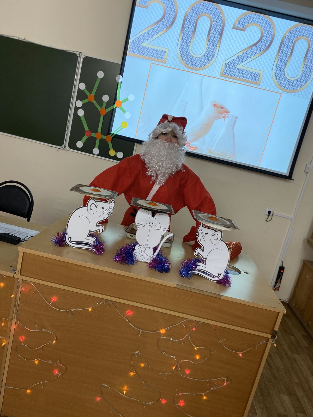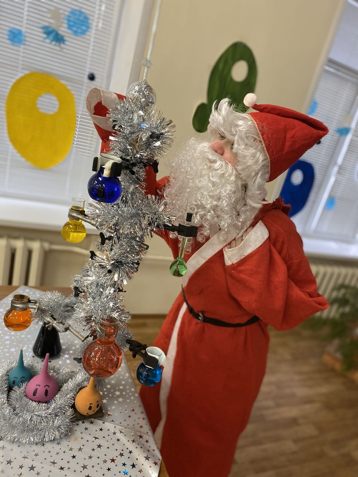 3. Лучшая презентация украшенного кабинета - и здесь мы взяли интервью у НАШЕГО Деда Мороза, которое он сопроводил демонстрацией химического опыта: