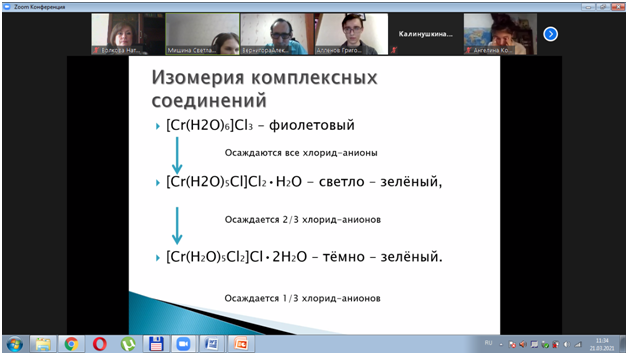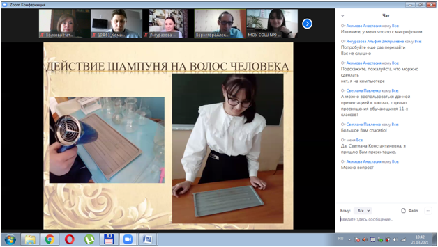 Зав. кафедрой «Химия и теория и методика обучения химии» Н.В. Волкова выступила в качестве председателя жюри секции «Химия», сотрудники кафедры – в качестве членов жюри. Мероприятие прошло дистанционно в онлайн-режиме. В начале конференции Волкова Н.В. выступила с приветственной речью, рассказала школьникам о направлениях химического образования в ПГУ.
