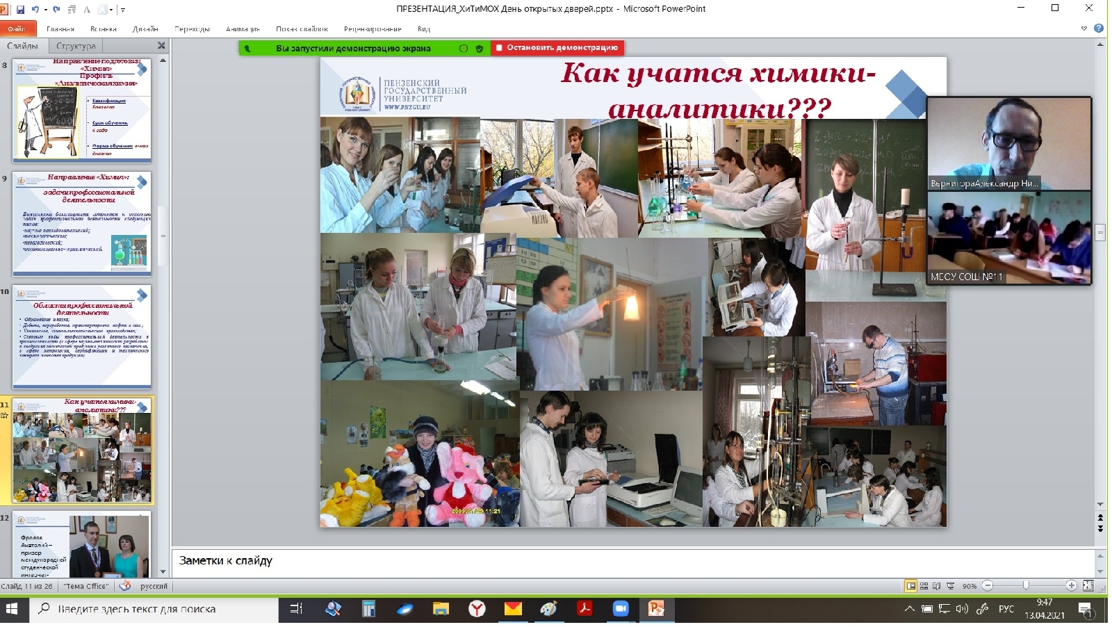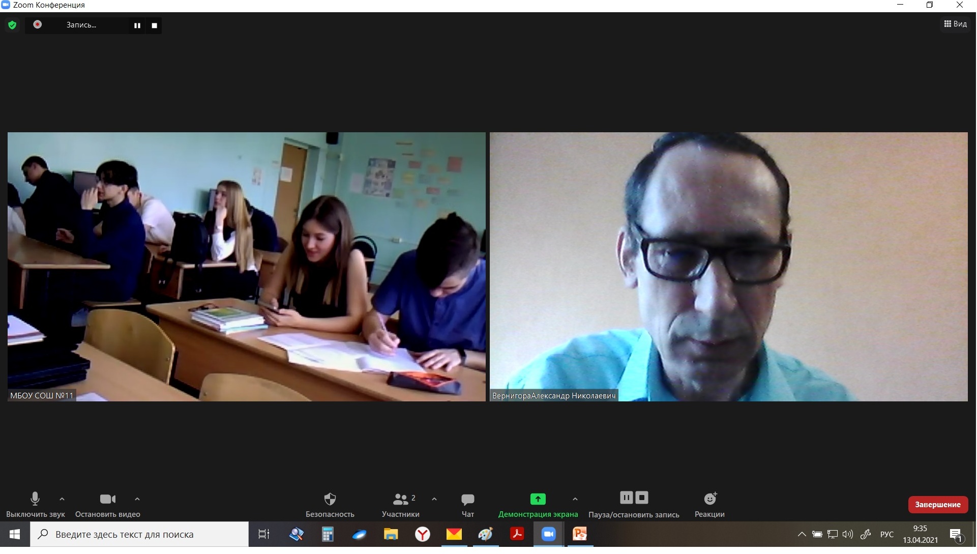 13 апреля 2021 года доцент кафедры "Химия и теория и методика обучения химии" Вернигора А.Н. провел профориентационную работу в МБОУ СОШ № 11. В мероприятии приняли участие ученики 11 класса.