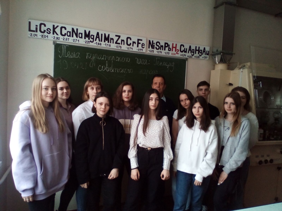 19 апреля 2021 года в День единых действий, были проведены кураторские часы в группах 18ФХ1, 19ФХ1 и 20ФХ1 в память о геноциде советского народа нацистами и их пособниками в годы Великой Отечественной войны. Целью проведения является сохранение исторической правды о преступлениях нацистов и их пособников в отношении мирных советских граждан в годы Великой Отечественной войны на оккупированной территории.