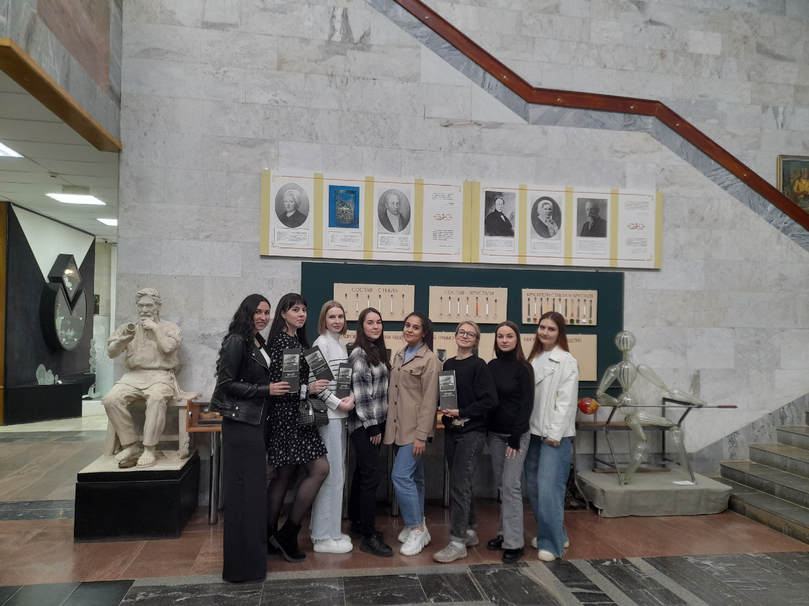 В ходе экскурсии, организованной доцентом кафедры ХиМОХ Н.В. Фирстовой и заведующим кафедрой ХиМОХ Н.В. Волковой, студенты познакомились с экспозицией музея стекла и хрусталя, где представлена уникальная – лучшая в России – копилка истории, культуры и школы мастерства отечественного стеклоделия.