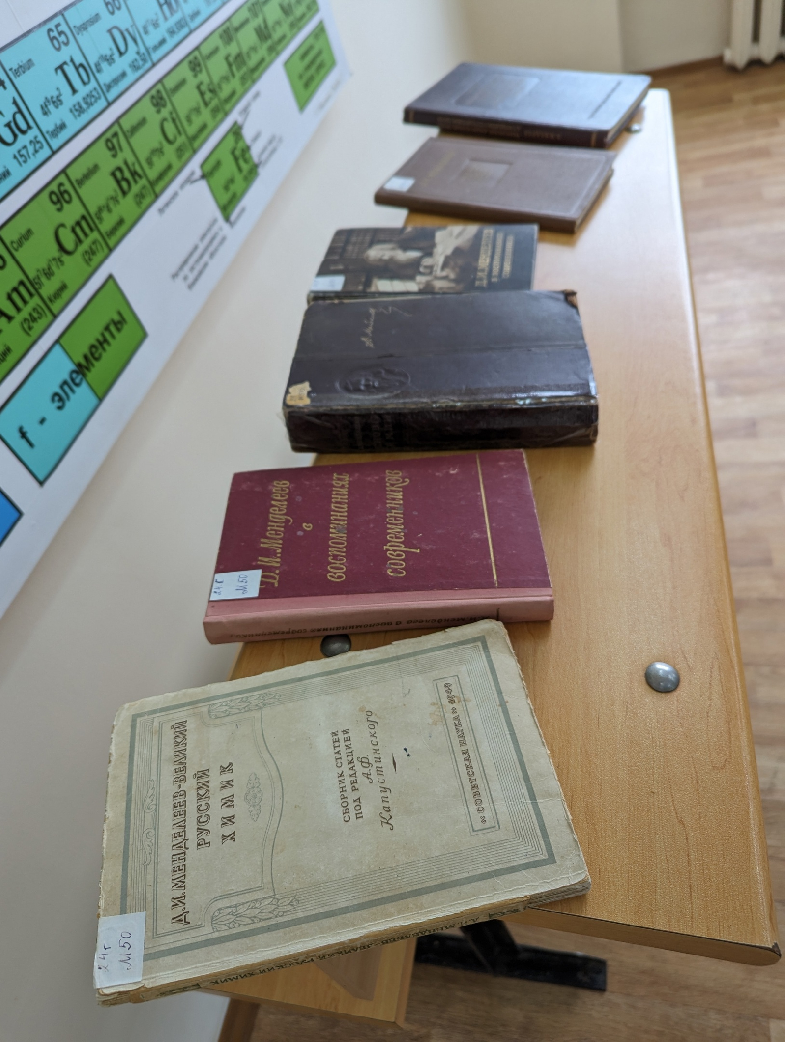 Также организована выставка научных трудов Д.И. Менделеева и трудов-воспоминаний о творчестве, личной жизни и трудовом подвиге гениального гражданина России и всего мирового сообщества.