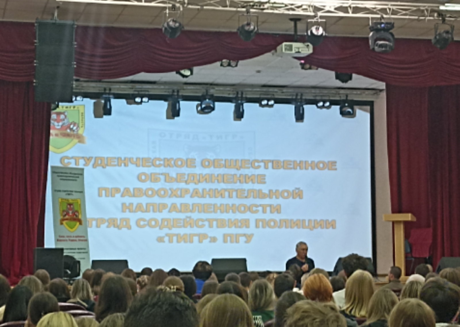 22 сентября группа 25ФХ1 (куратор - старший преподаватель кафедры ХиМОХ Хусаинова А.А.) встретилась с представителями отряда содействия полиции "Тигр", функционирующем на базе Пензенского государственного университета. Встреча проходила под руководством начальника штаба отряда содействия полиции «Тигр» при ПГУ Мартыновой Юлии Евгеньевны и проректора по молодежной политике и воспитательной деятельности Еременко Юрия Васильевича.